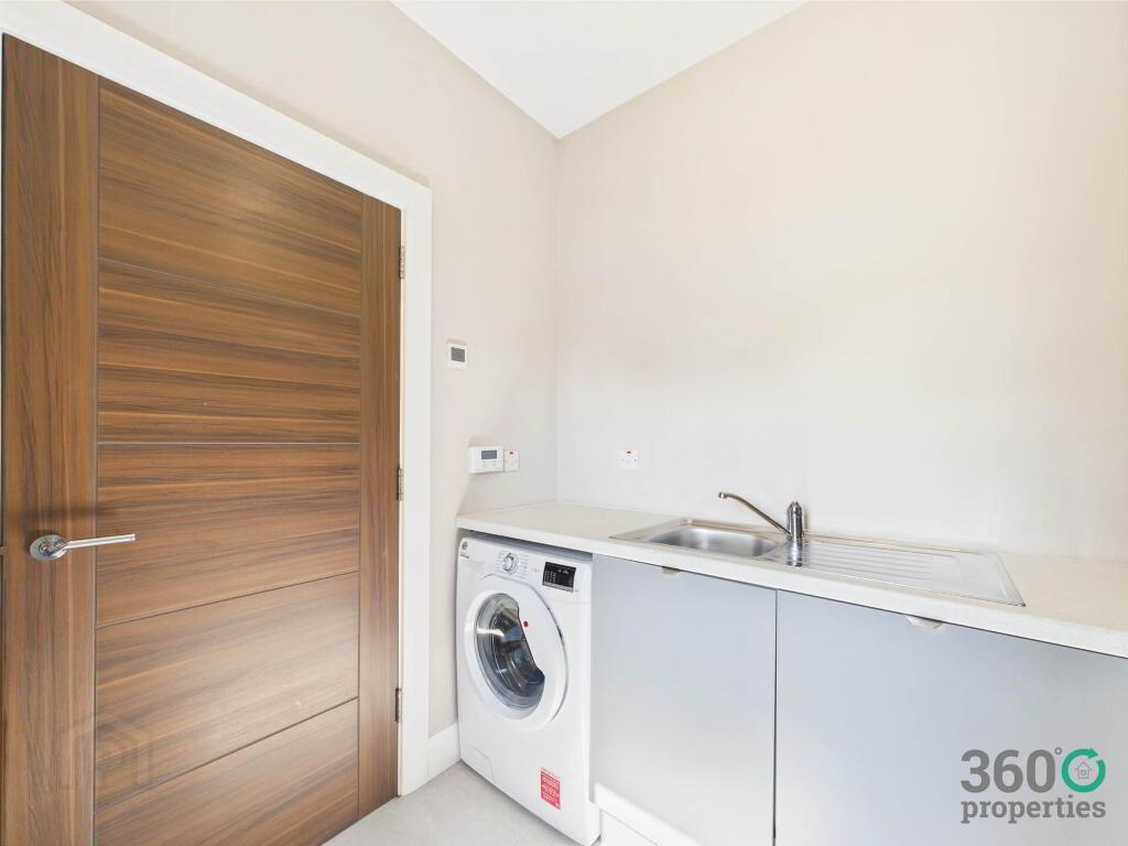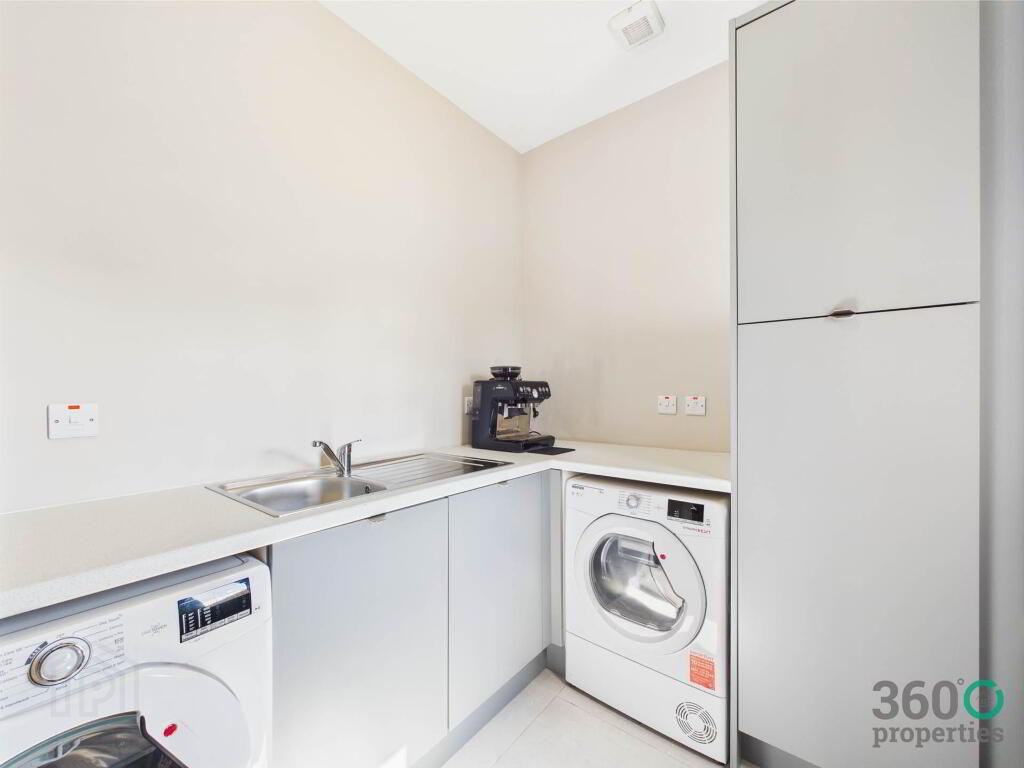 Utility: 7`4`` x 6`0`` Range of eye and low level grey units with white work top. Stainless steel sink with drainer bay and mixer tap. Plumbed for washing machine and space for tumble dryer. Tile floor.