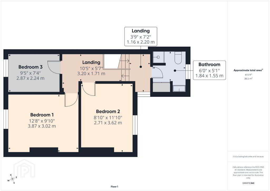 Landing: 10`5`` x 5`7`` With carpet.